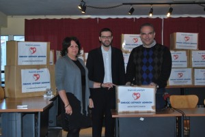Στη σχετική τελετή, ο Αντιπρόεδρος του Ομίλου Ιατρικού Αθηνών, κ. Χρήστος Αποστολόπουλος παρέδωσε το υλικό στον Δήμαρχο, παρουσία της Αντιδημάρχου κας Μαρίας Κιμπιζή, Υπεύθυνης σε θέματα Παιδείας και Πολιτισμού και εκπροσώπων των Παιδικών Σταθμών, των Νηπιαγωγείων και των Σχολείων της περιοχής, των αθλητικών εγκαταστάσεων, των ΚΑΠΗ καθώς και των Υπηρεσιών Καθαριότητας και Ύδρευσης του Δήμου.